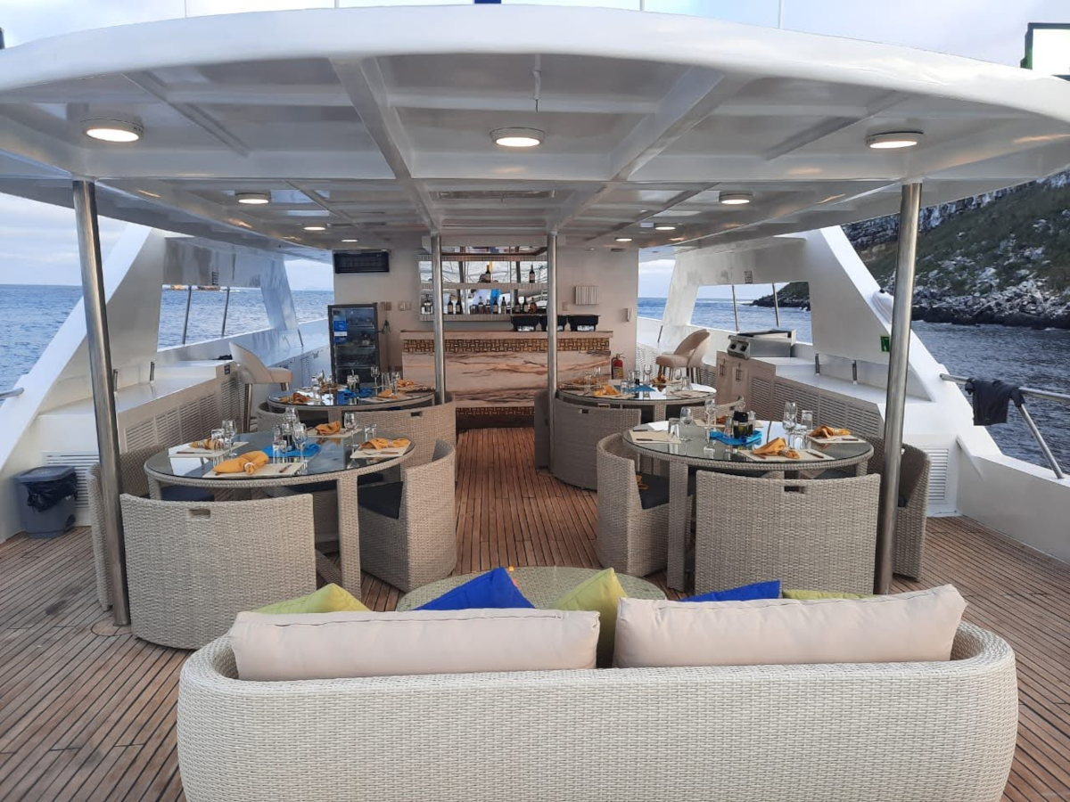 - La quota NON comprende: Volo dall'Italia, Tassa del Parco Nazionale delle Galapagos di 200 $ e 20 $ di Tourist Card, Tasse sul carburante di 150 $, Mance all'equipaggio, Bevande alcoliche premium, Costi di noleggio, istruzione e vendita al dettaglio, Nitrox a pagamento, ultima cena a bordo