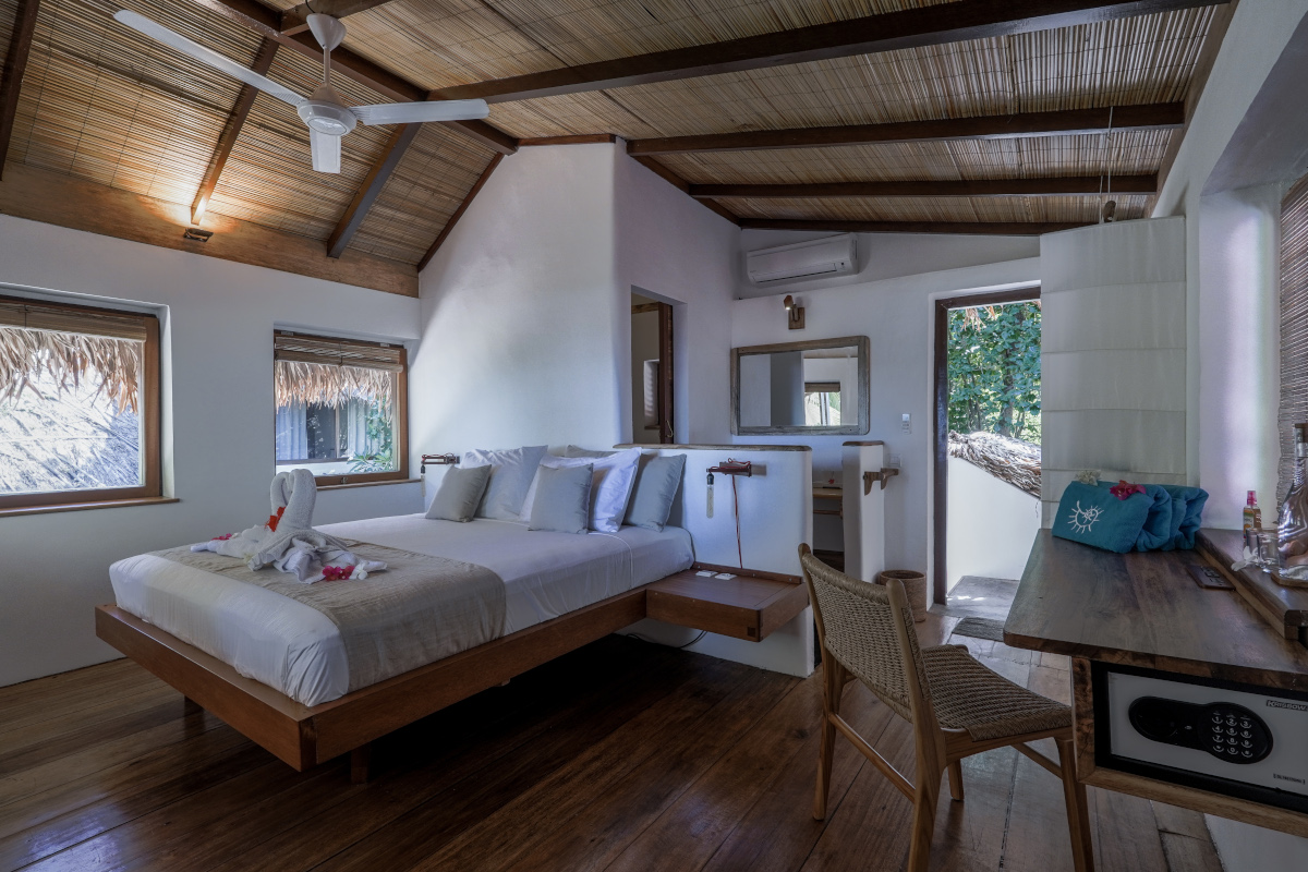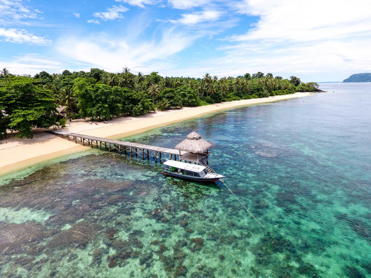 Coral Eye è un piccolo resort nato nel 2009 nell’isola di Bangka (Nord Sulawesi, Indonesia). Al Coral Eye bastano pochi passi per ritrovarsi su quella che viene considerata la spiaggia più lunga e bella di tutto il nord di Sulawesi, frangiata da alte palme che fanno ombra e di fronte ad un mare dai colori straordinari. Un paradiso riservato a non troppi ospiti, massimo 24. Il reef è accessibile a qualsiasi condizioni di marea grazie ad un pontile e si estende per centinaia di metri lungo tutta la lunghezza della spiaggia. Il resort sorge in un giardino tropicale ricco di palme da cocco e piante tipiche di questa zona ed è stato costruito con soluzioni innovative in un mix di architettura tradizionale e moderna, che fanno della struttura un luogo ideale dove vivere, lavorare, e rilassarsi in un contesto semplice, in cui praticare anche Yoga. Nel 2025 nasce il Beach Pavilion, cuore del resort dove gli ospiti troveranno il ristorante, ampie aree relax, la piscina e un’ampia veranda aperta in riva al mare. L’edificio Marine Outspot offre un’area spaziosa e aperta, uno spazio dinamico in cui aree sociali, spazi di lavoro e angoli privati si fondono perfettamente. Il resort è composto da 7 camere Superior nella struttura principale, 1 camera con terrazza sul mare situata sopra al diving center, 1 villa indipendente con 2 camere unite da un salotto, 5 Ville situate nel giardino, 6 Ville fronte mare e 4 Beachfront Pool Villa. Tutte le camere dispongono di bagno privato, aria condizionata, zanzariera e cassaforte. Ci sono inoltre una biblioteca, una boutique, un laboratorio con microscopi ed una Spa.