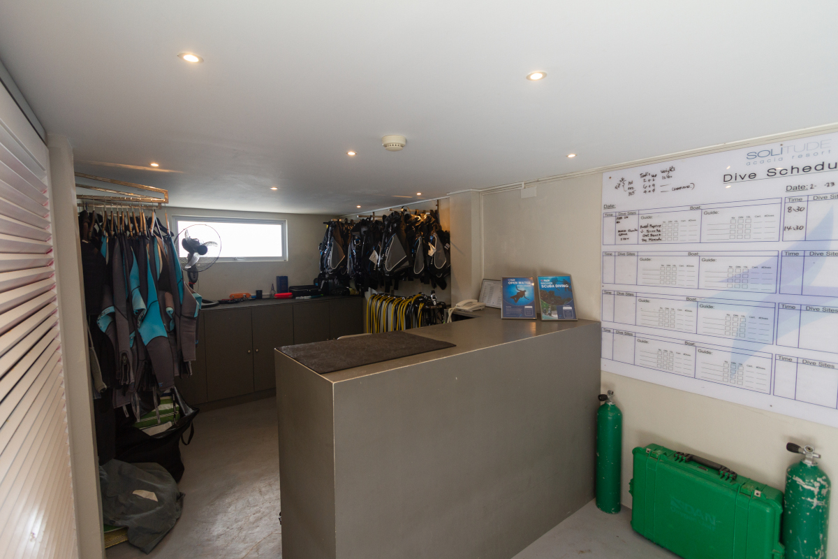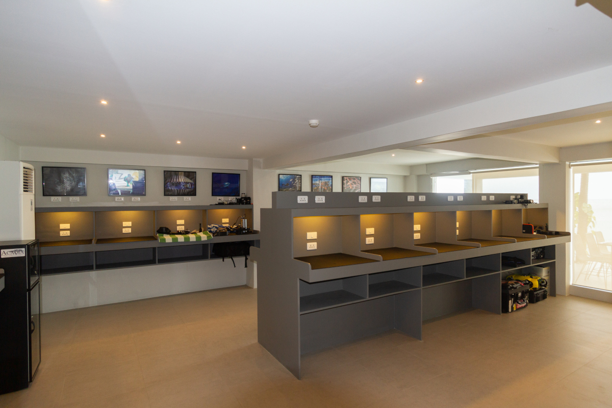 Il centro diving interno alla struttura è progettato per soddisfare le esigenze di subacquei di tutti i livelli di esperienza. A terra, una spaziosa sala macchine dotata di 28 postazioni individuali, punti di ricarica e impianti di risciacquo.